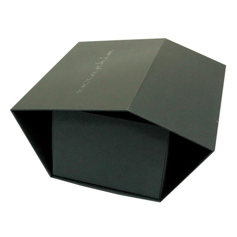 This is a black flat pack packaging boxes which made by specialty texture paper + 1200g grey board,the logo on top of the lid debossed+UV-coating.We could custom size as per your request.