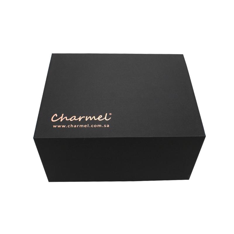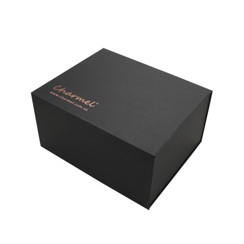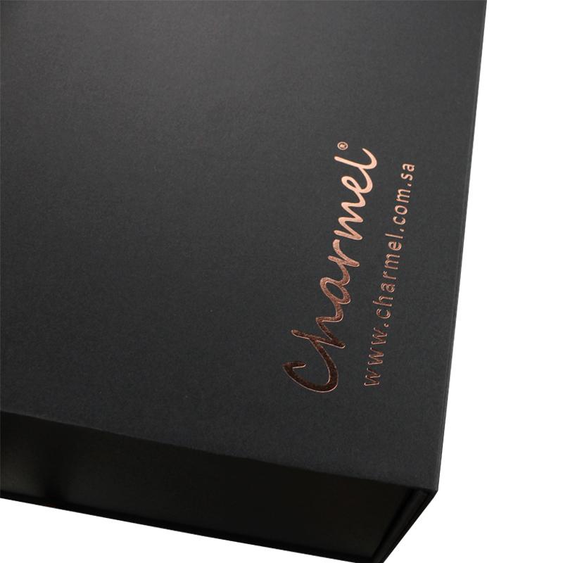Black high-end folding packaging boxes, for coffee promotion gift packaging, gift box with Rose Gold Logo.
