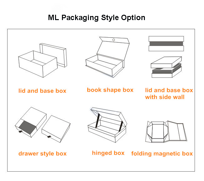The second type is book shaped magnetic box, which is usually packaged with insert padding. This kind of box is especially high-grade.