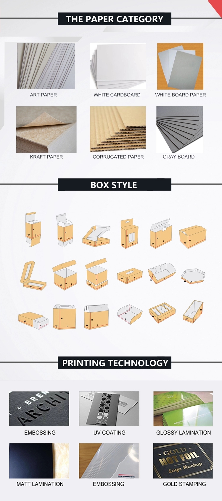 Secondly, according to his appearance, he can customize various picture printing, hot stamping process, CMYK printing, single-sided printing or double-sided printing, and hot stamping can be the same as gift boxes. Allows you to develop your own personalized packaging gift box to meet all your requirements for gift packaging.