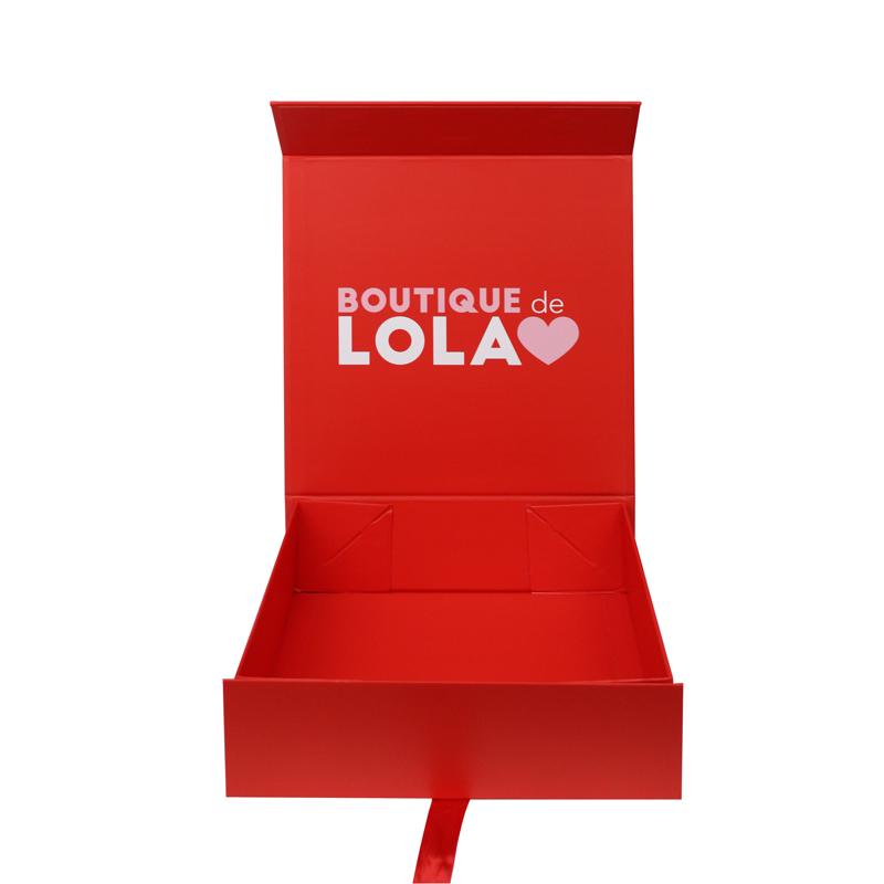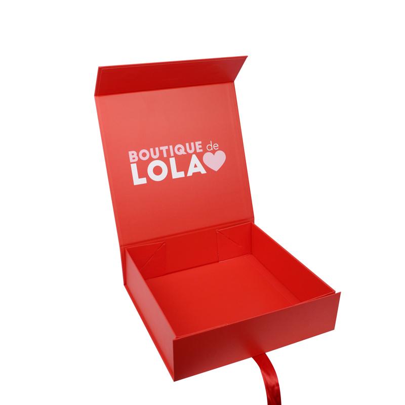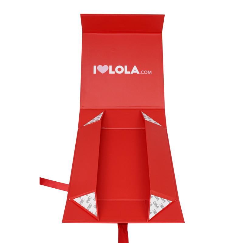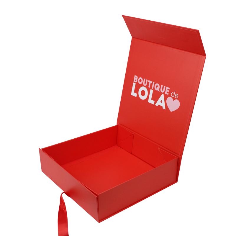 Custom Printed Red Magnet Ribbon Folding Bookshaped Paper Box