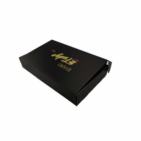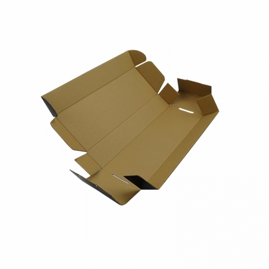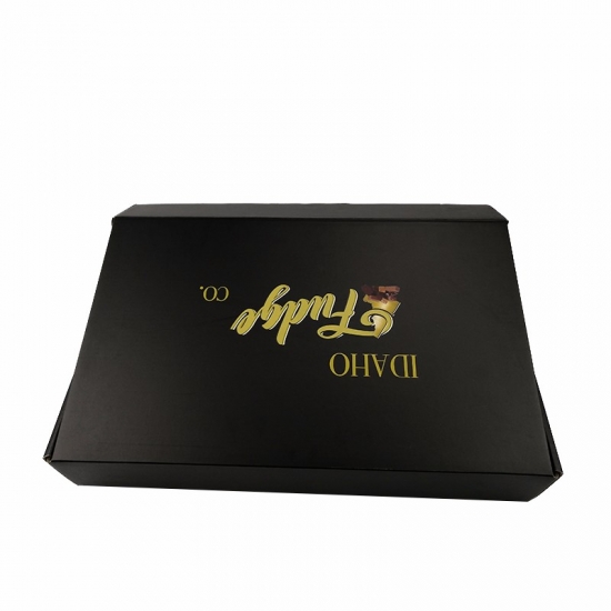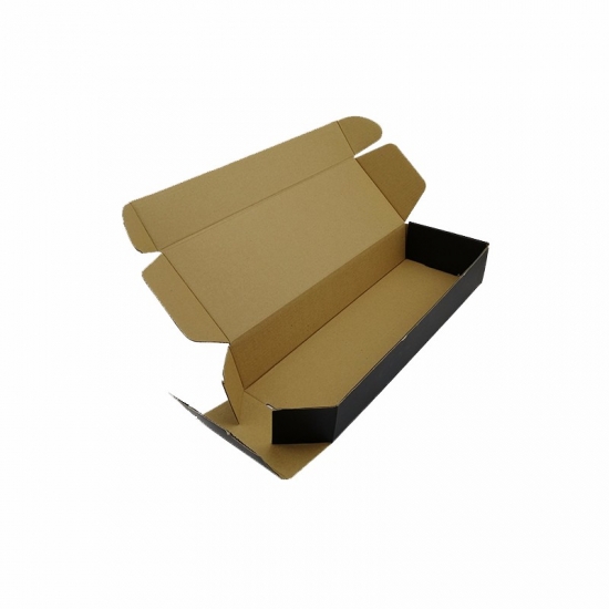 This is a black mailer box full of color printing which made by which made by 300g CCNB+BE flute,inside is brown background without any printing,outside of box is matte finishing.