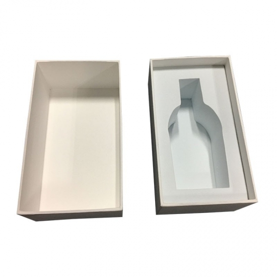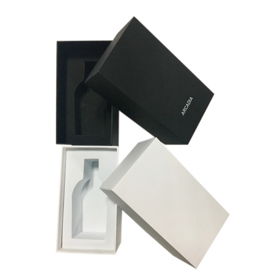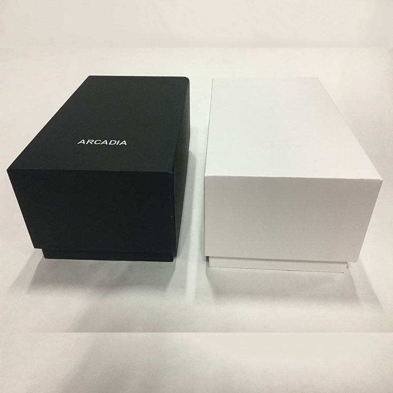 This is a cosmetic boxes with lids which made by 157g C2S art paper +2mm grey cardboard,white color with matte laminated,and black color have white foil stamped logo on lid.