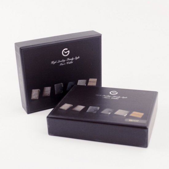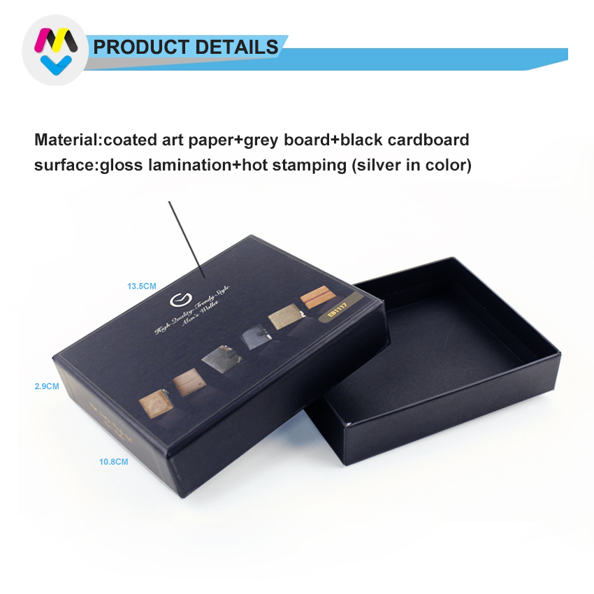 2) Material:157g coated art paper+1000g grey board+black paper