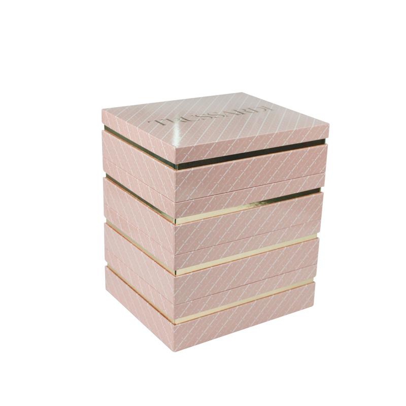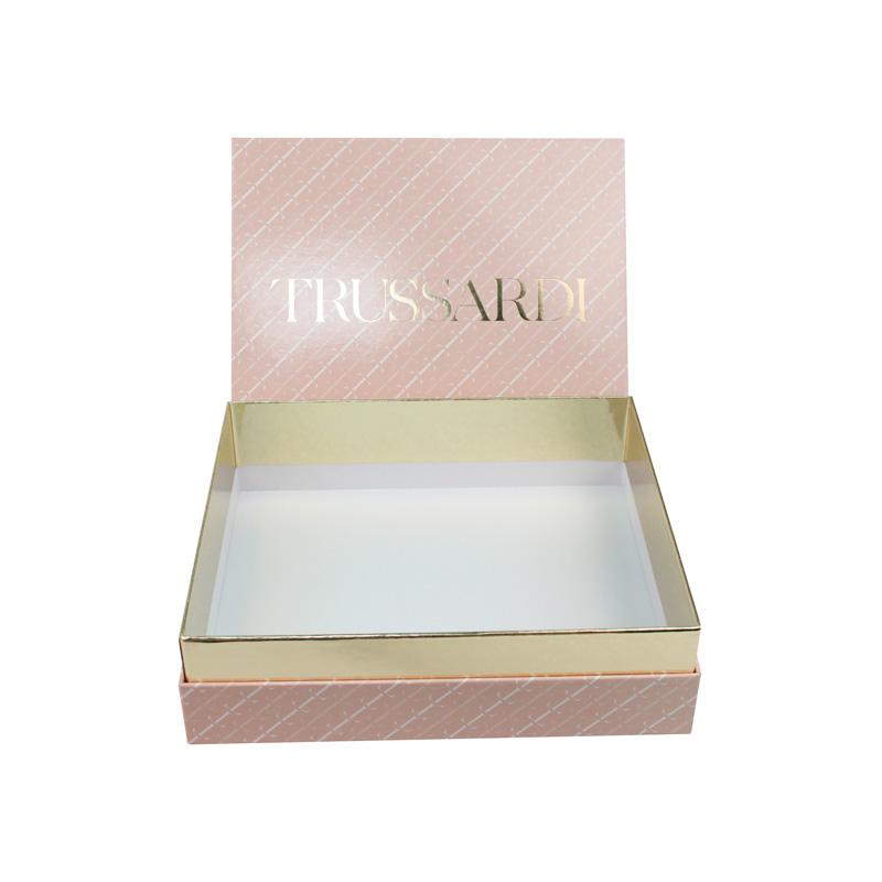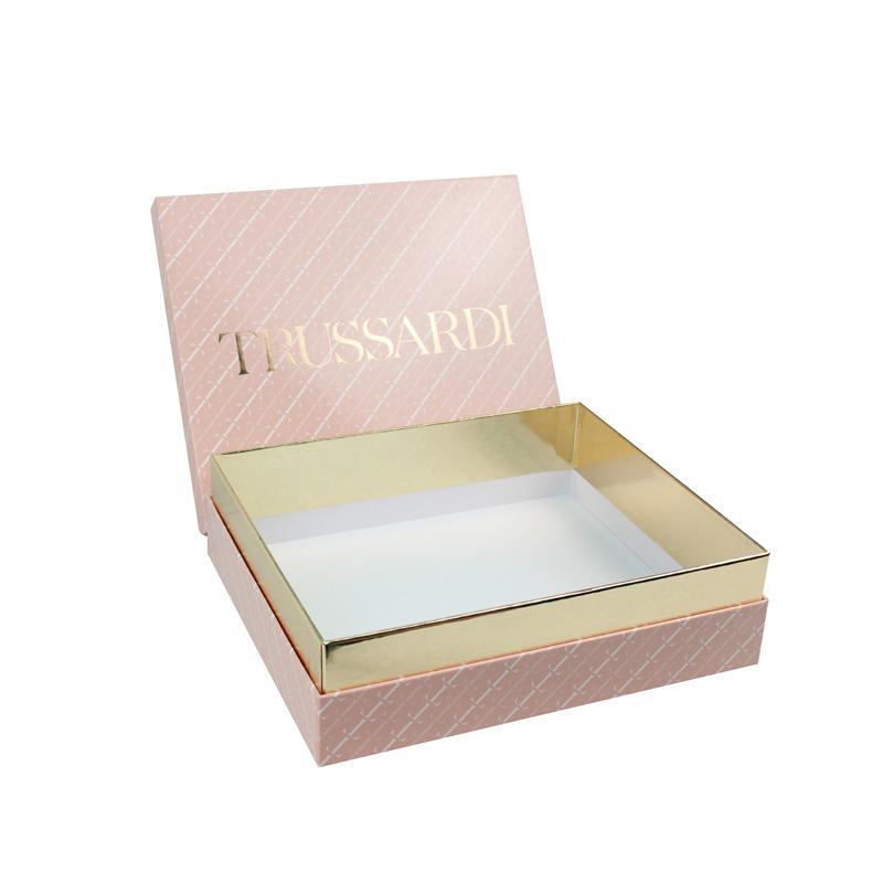 box material: 157gsm art paper mounted with 1200gsm rigid cardboard, with gold liner on the shoulder.