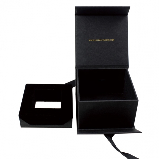 Custom Logo black magnetic box with ribbon Decorative flip top boxes with magnetic closure