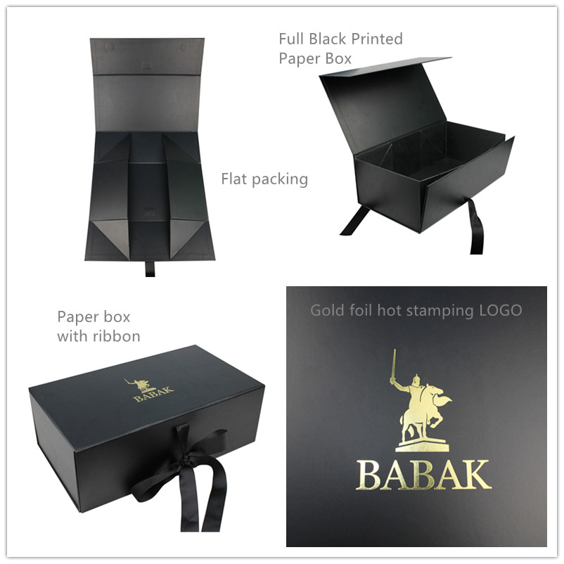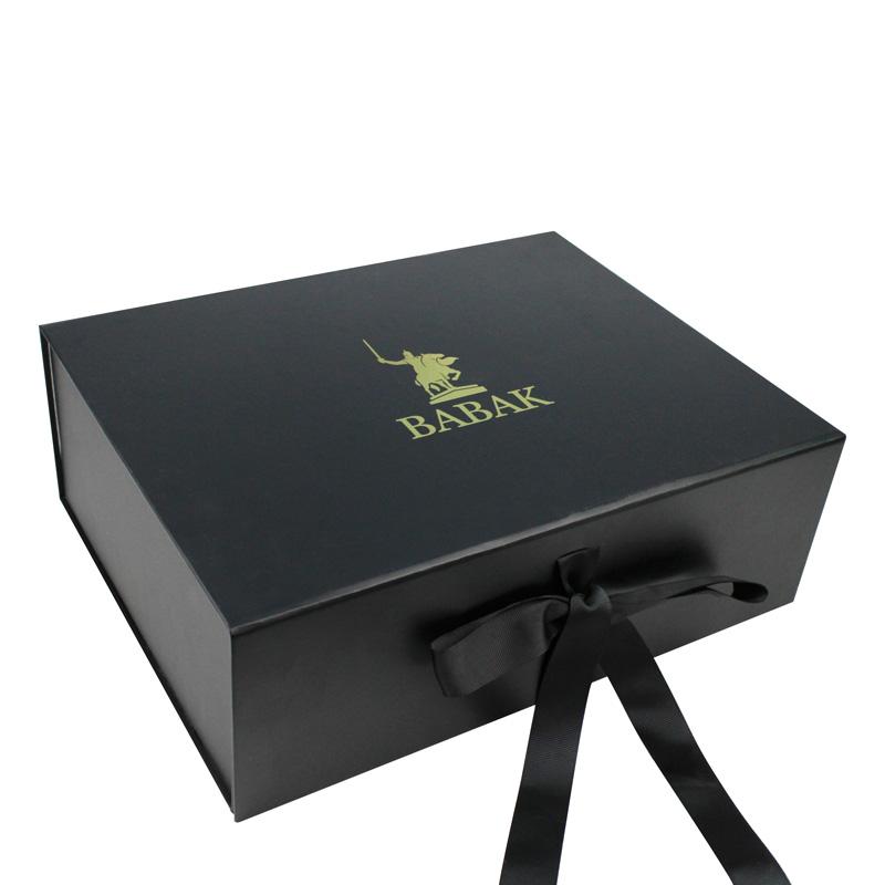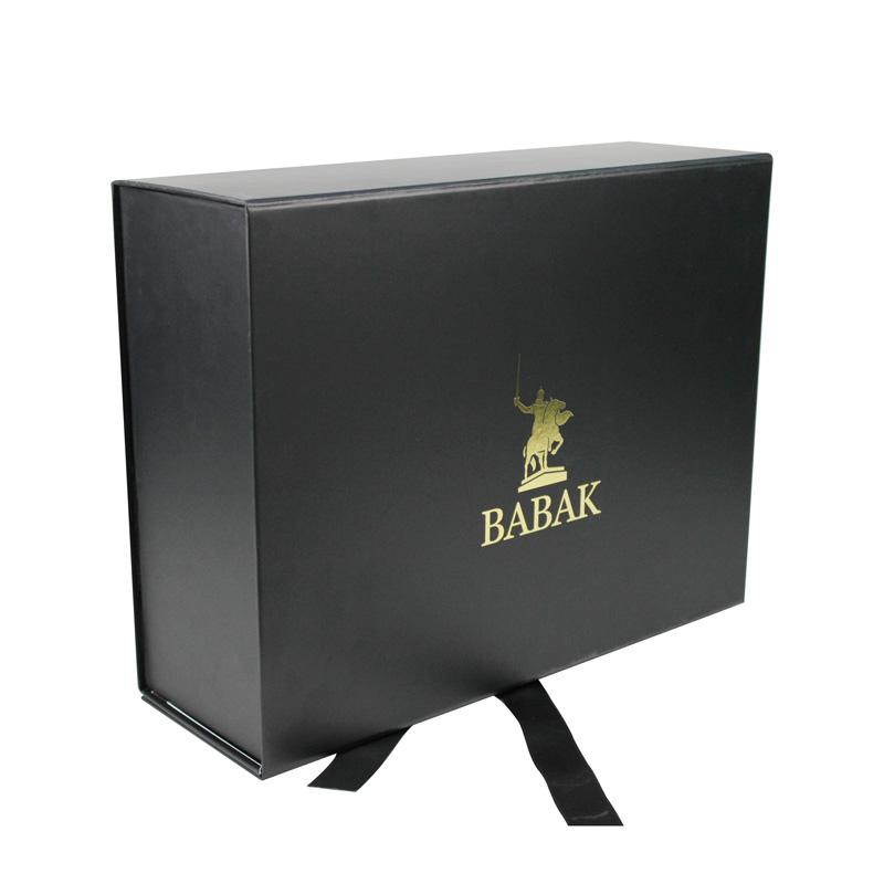 Custom Logo Gold Foil Hot Stamping Magnetic Foldable Cloth Box With Ribbon