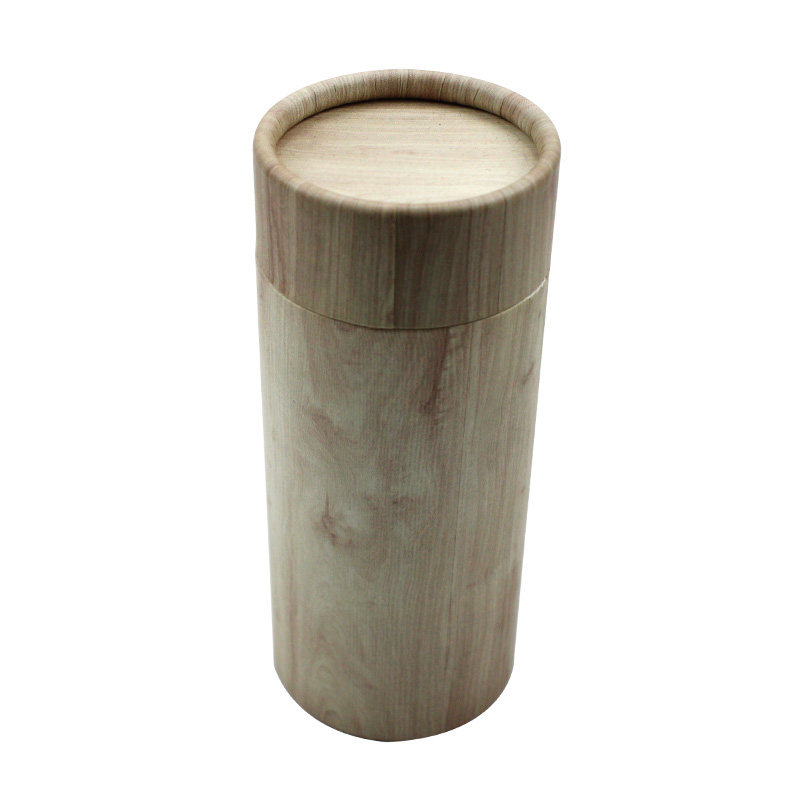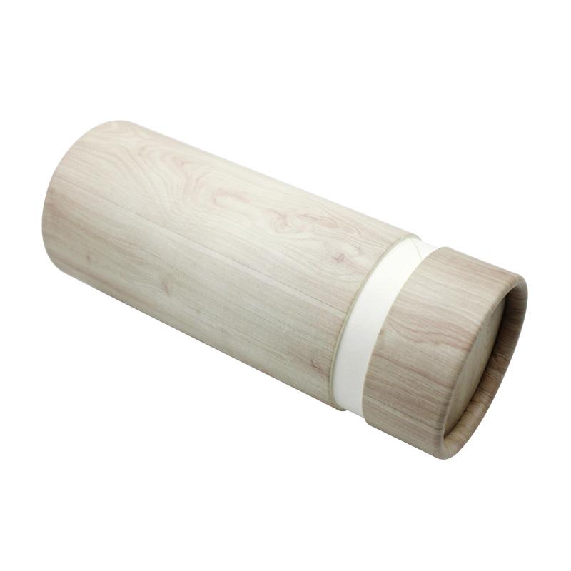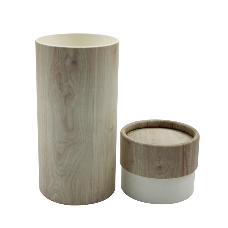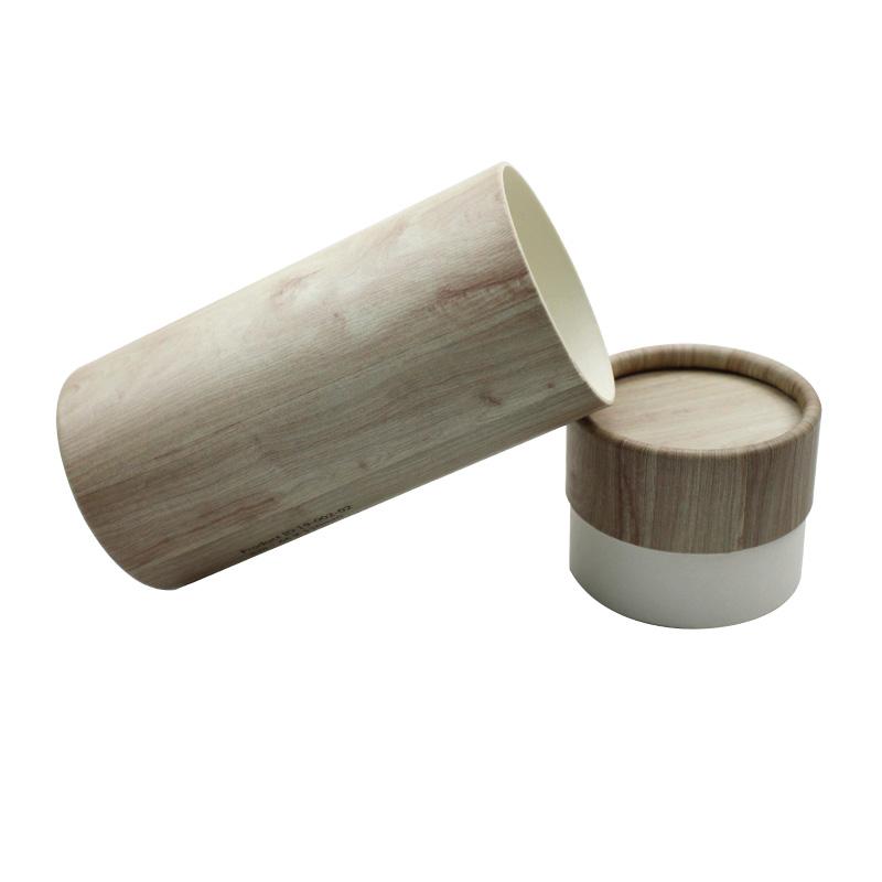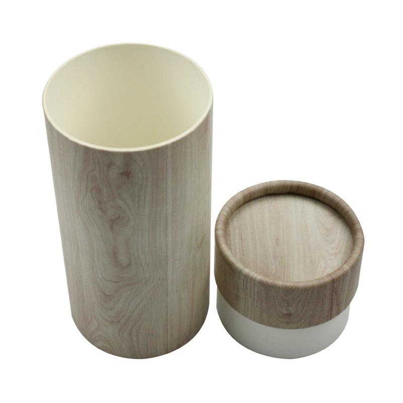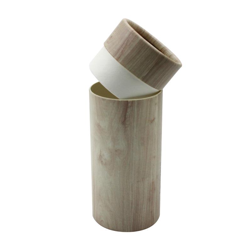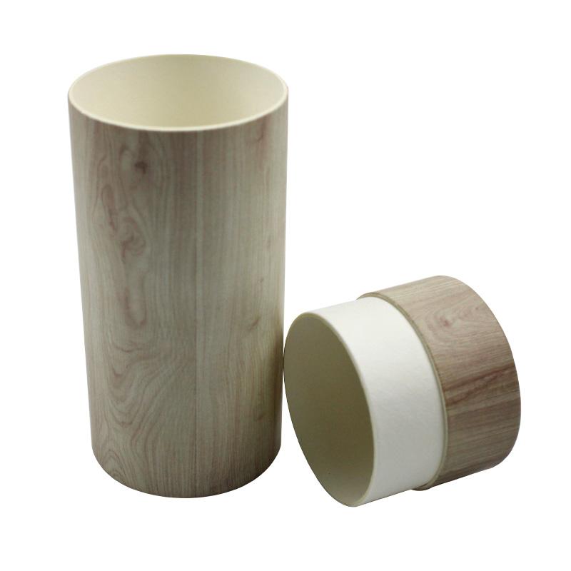 This is a round gift box with lid made of special wood-grain paper. It looks like a high-end wooden packaging box.