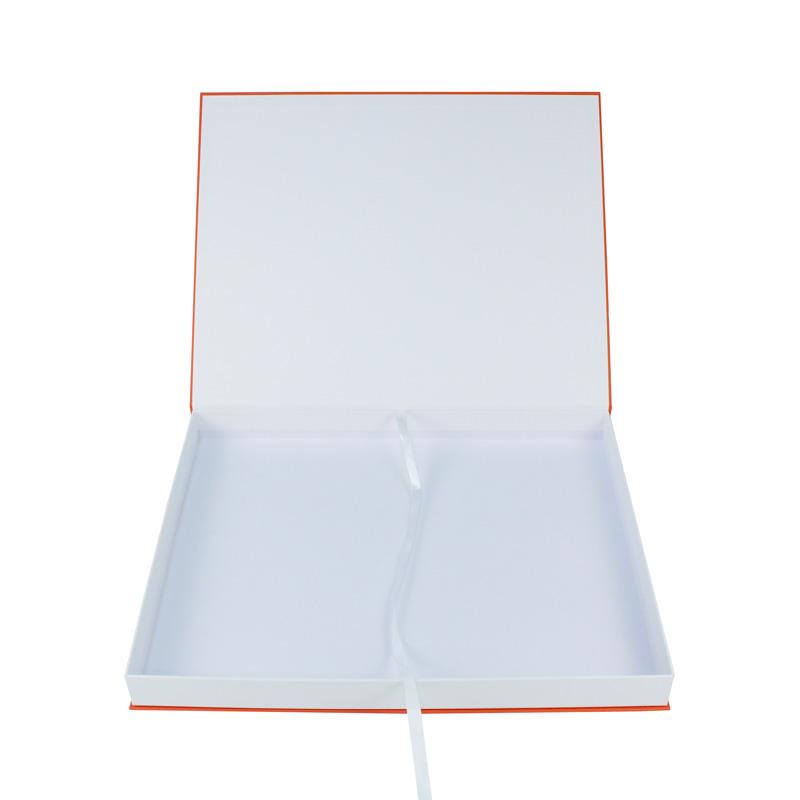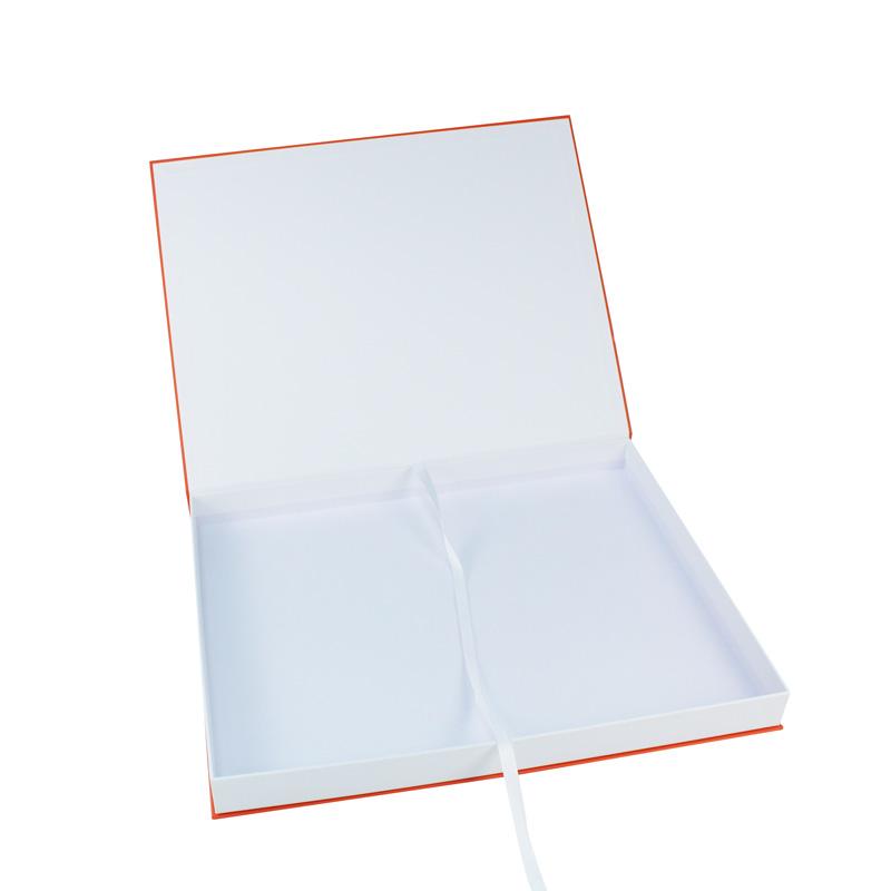 box feature: built-in magnets for closure, ribbon inside to keep the frame in shape. closed like a book.