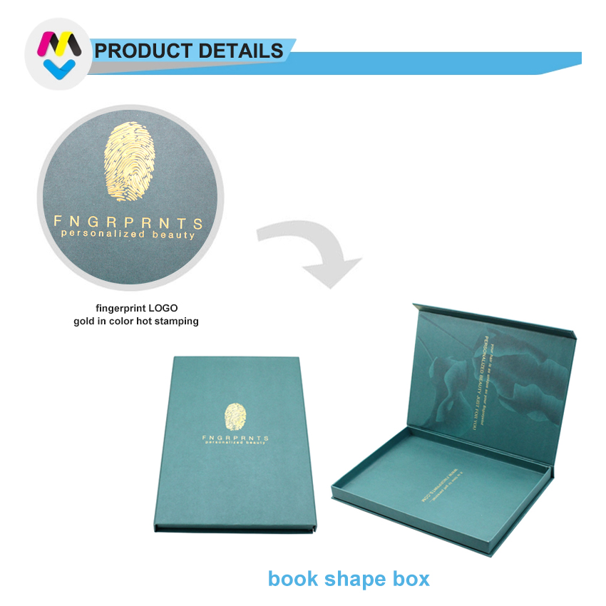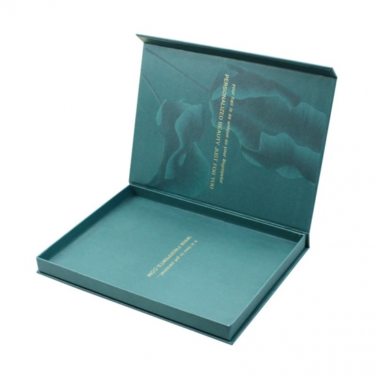 Green cardboard magnetic box was made by 157gsm C2S art paper laminated with 2mm grey cardboard Support customized any size any color and logo ,surface finishing was matt lamination,gold hot stamping CMYK printing Size 22.3*16*2cm
