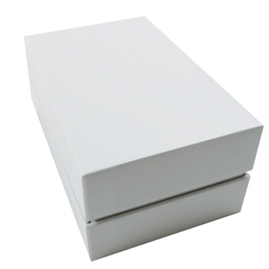This is custom sturdy enough plain white lid and base box made by 157g C2S art paper + 1200g grey board, the shape of the protection EVA inside will be shaped accordingly to the sizes of the items will be in the box.