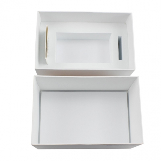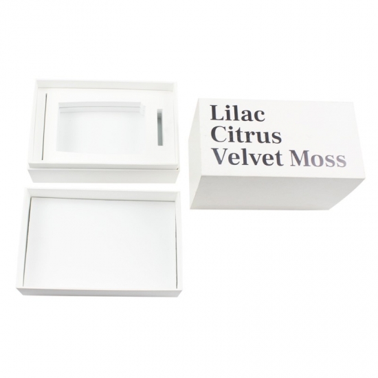 The box is made by 157g art paper and grey board, it is length 29 x width 17 x height 11cm large. On one side of the box is printed by custom text and there is a black logo on the top lid.