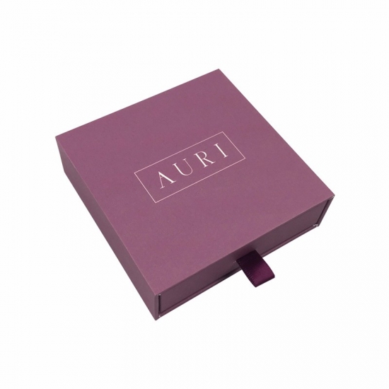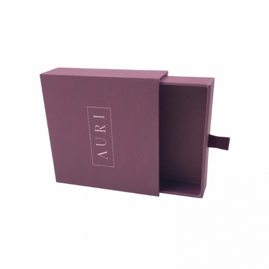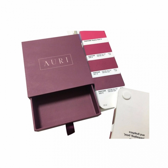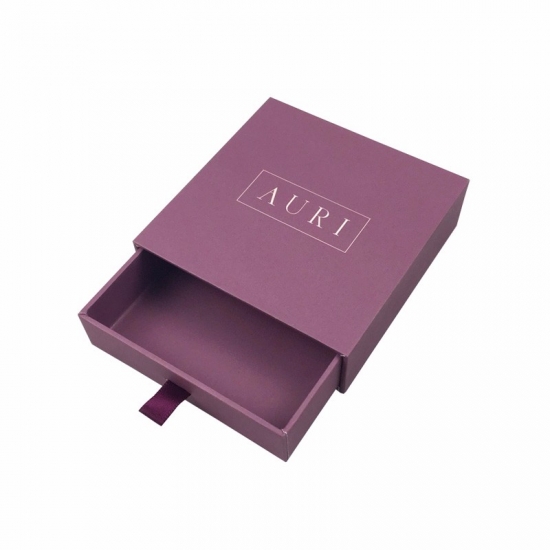 Customize your own unique pantone color jewelry simple fashion cardboard drawer boxes,matt lamination,hot stamping pink in purple color,use pantone color.