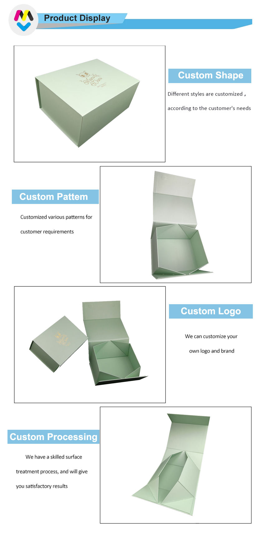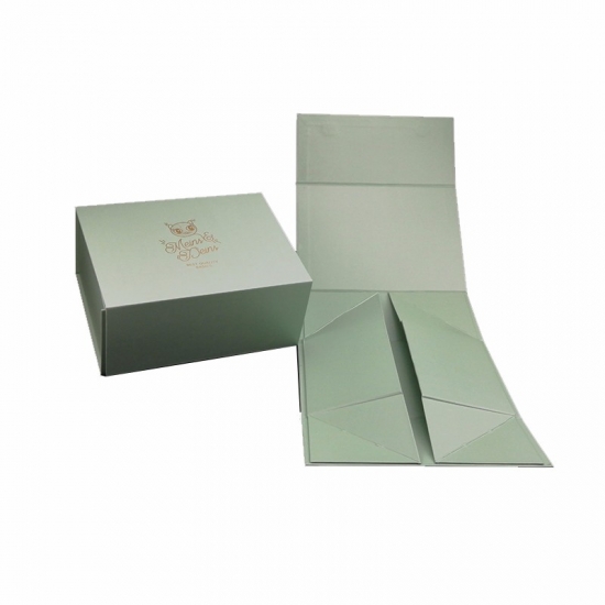 This is a green color folding paper boxes which made by 157g C2S art paper + 1200g grey board,full color printing on both outside and inside of box with logo gold foil stamped.