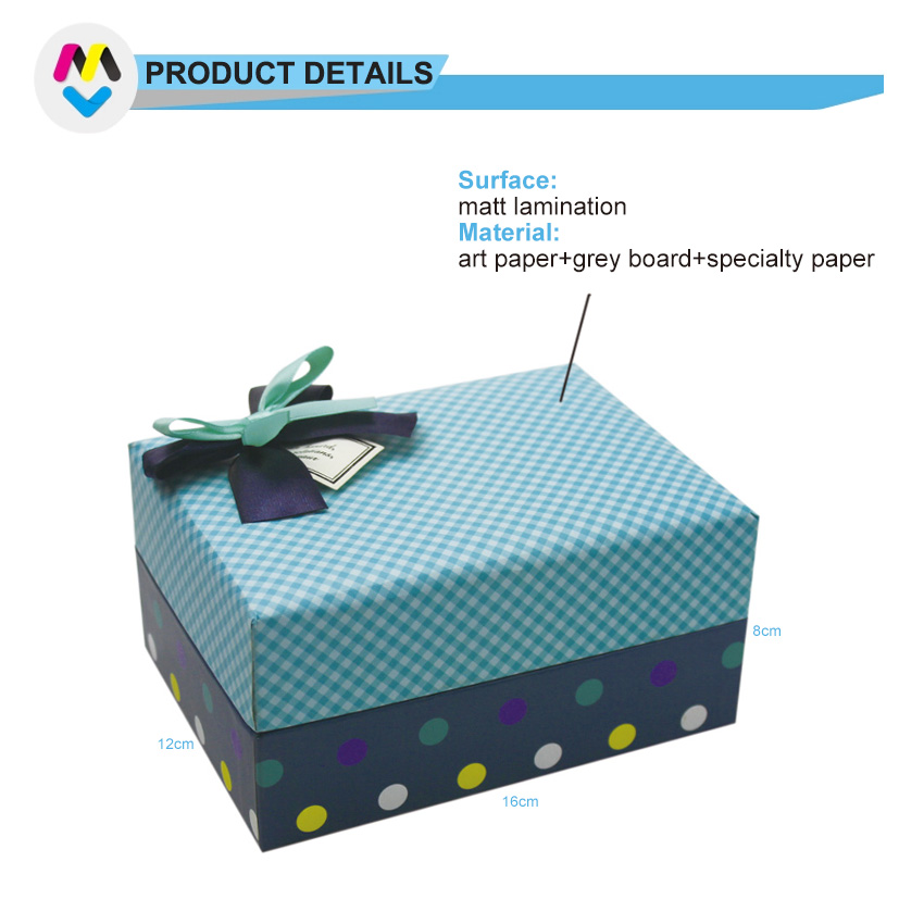 This is a regular pretty floral butterfly knot gift top and bottom box made by 157g C2S art paper + 1200g grey board,the lid is padded with cotton which make it touch more comfortable and soft ,the inner box has a plaid plain pattern.