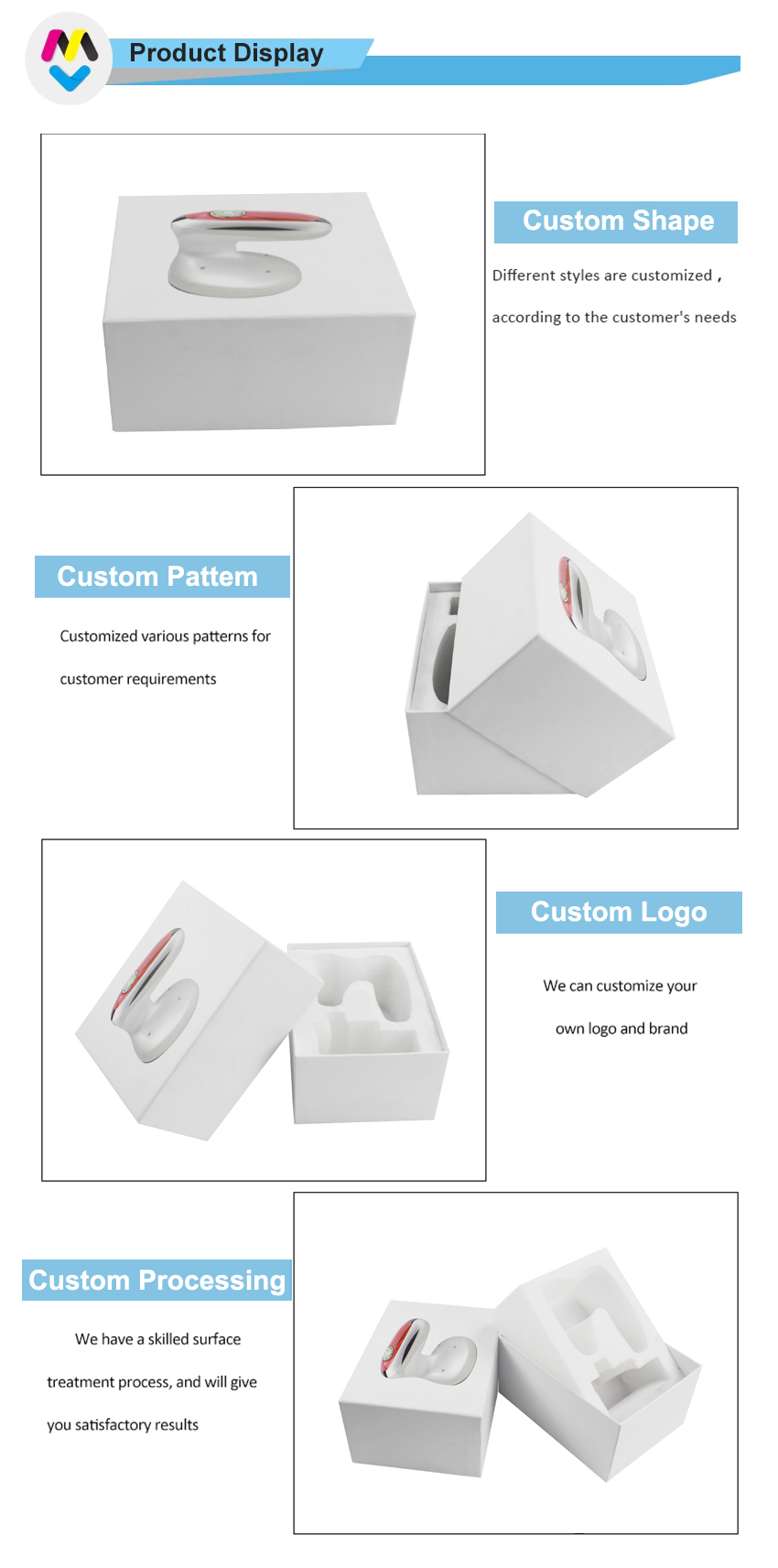 This is a top and bottom box which made by 157g C2S art paper + 1200g grey board,there are white good quality PE foam on the bottom inside of the box.The face instrument can fit perfectly inside PE foam.