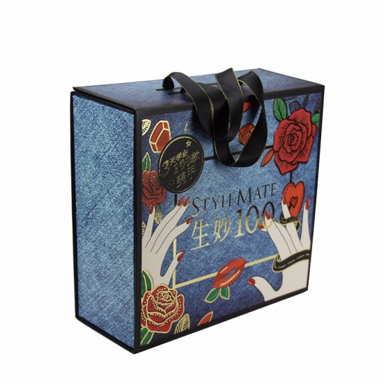 Normally 15-20 days after design/sampleDenim Pattern with Grosgrain Ribbon Rope Handle Folding Box
