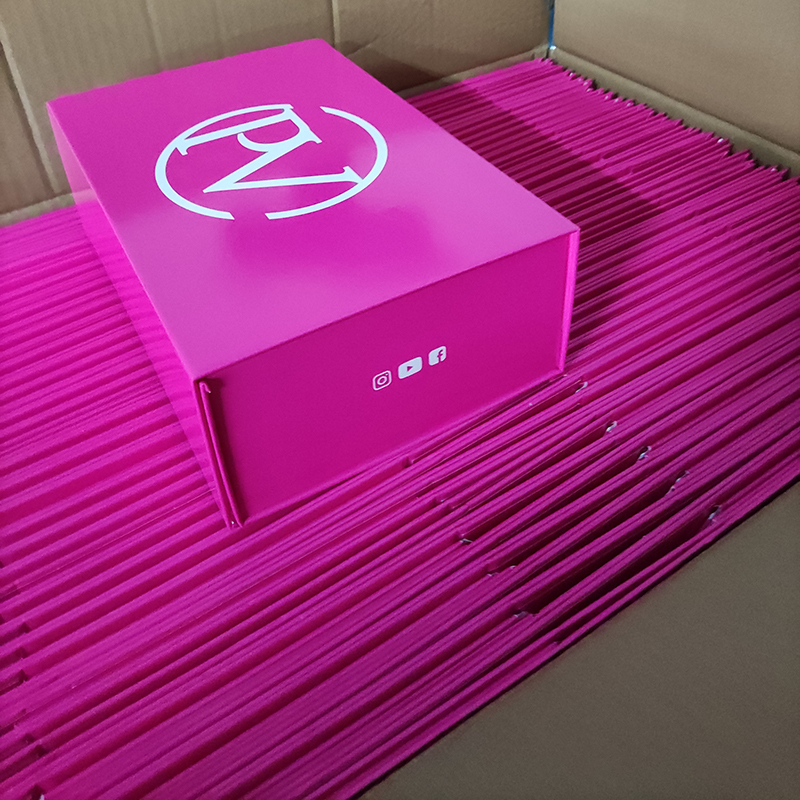 According to our experience, I recommended foldable cardboard boxes to her, because cardboard folding boxes can flat shipping which can help her save shipping cost,Regarding the design, we first consult her ideas, and then recommend the color and logo design. After the design is completed, we confirm and adjust the design final confirmation, because she believes that our professional experience chooses to directly confirm the order without need make folding box packaging sample. After the sample confirmation is completed, We completed the production in two weeks and shipped foldable cardboard boxes by air.