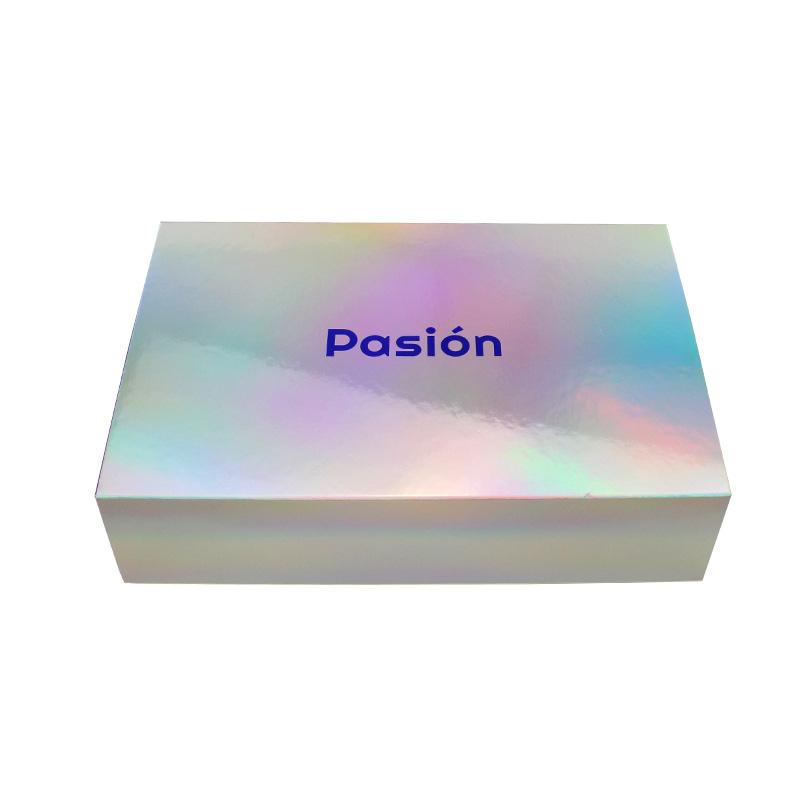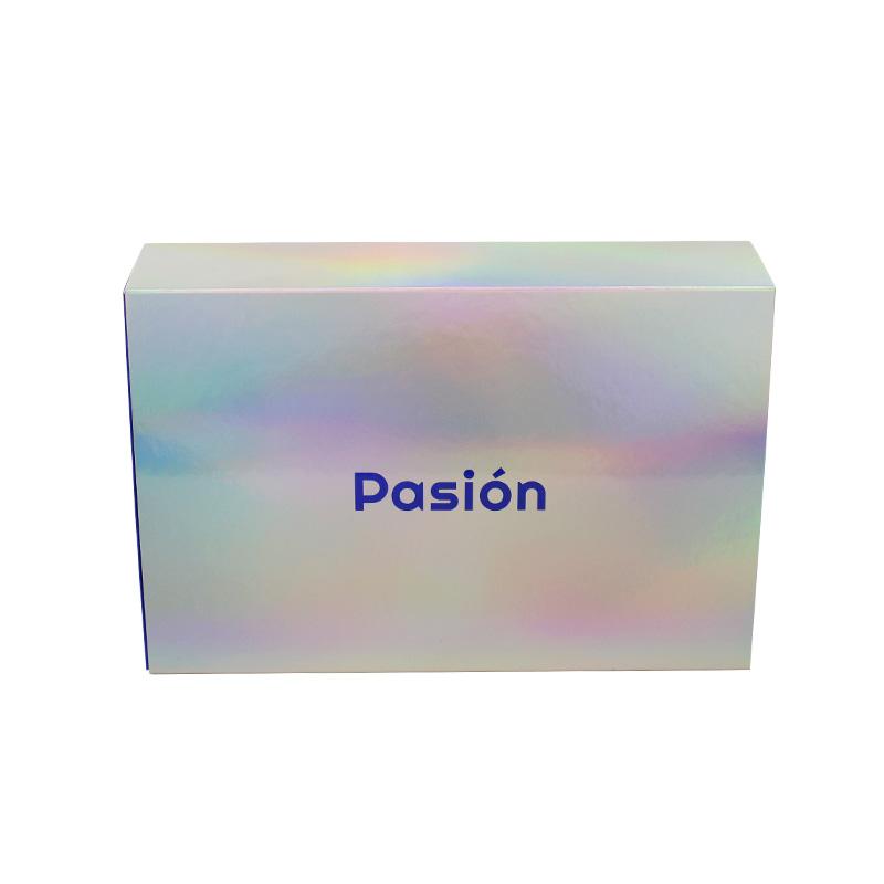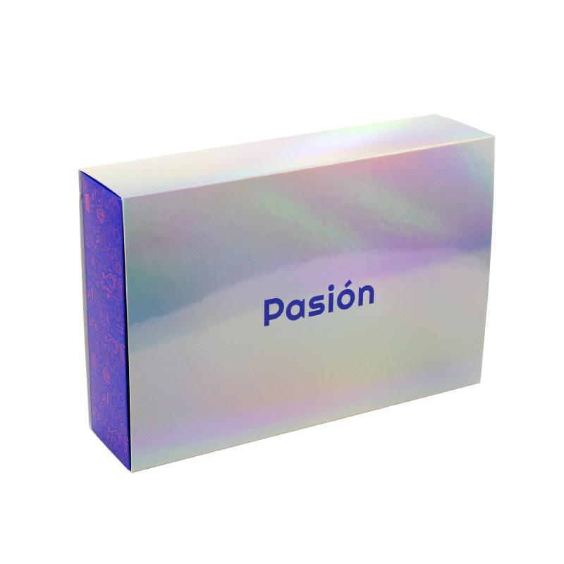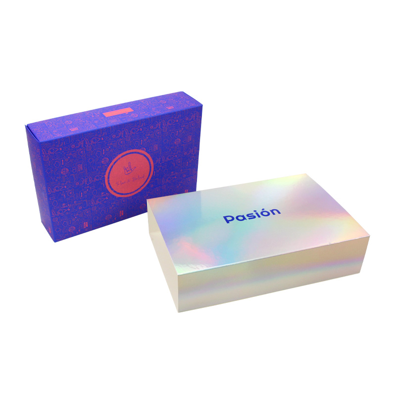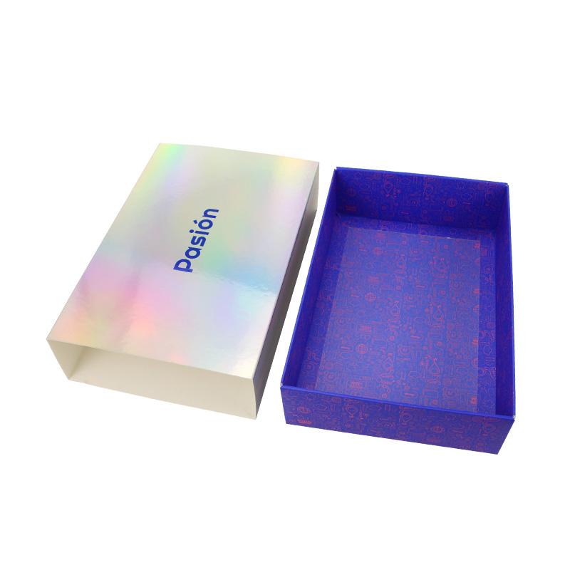 This is a sliding drawer box which made by laser special paper+350g C1S art paper,full of custom matte pattern printing on bottom box,logo in foil on the cover laser paper .