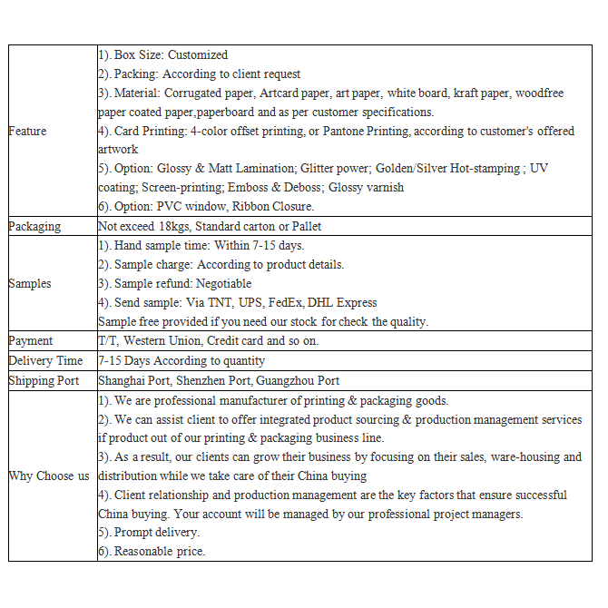 Remark: All these product pics we posted on our web are just for your reference about what kind of packaging we can make, not mean we are selling the same as stock.We focus on custom Any size/color print/structure of paper packaging and so on