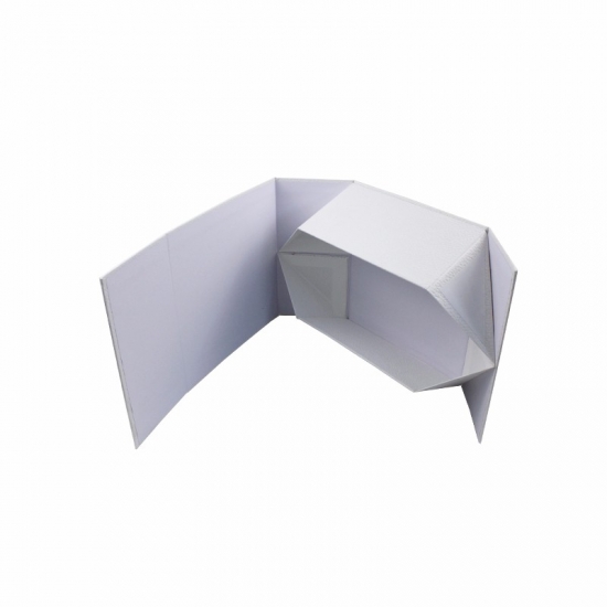 This is a white folding boxes with magnetic flap which made by specialty texture paper + 1200g grey board,full white texture pattern on outside of box.We could custom size as per your request.