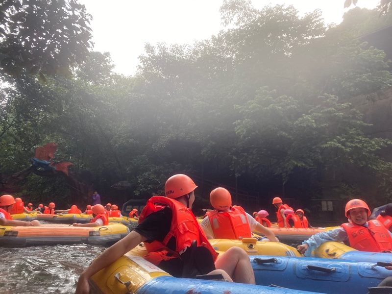 Qing yuan is a relatively characteristic city. The most anticipated project should be the drifting in Qingyuan Gulong Gorge. It is known as "the king of drifting".Ancient Dragon Gorge in Qingyuan, excites the world! It is an activity that tests the spirit of teamwork. It requires two people to sit on a boat at the starting point and complete the rafting for an hour and a half. Everyone must pay attention to your partner and cooperate with each other so that your boat will not be overwhelmed by the rushing spring water. If you don't cooperate well, you will face the danger of falling off the boat. It turns out that we have a great rapport with our colleagues, and this event has perfect ending. We all enjoy this adventurous and exciting activity.