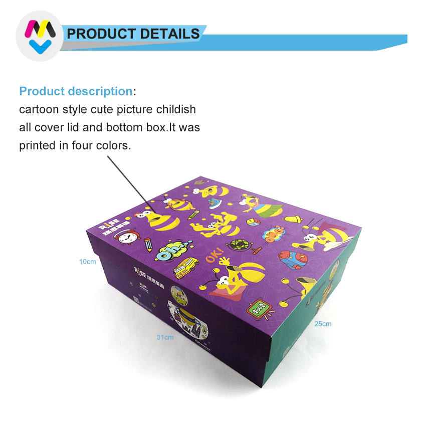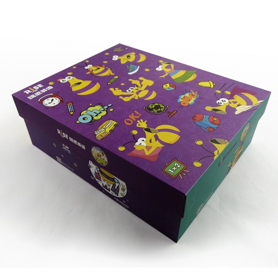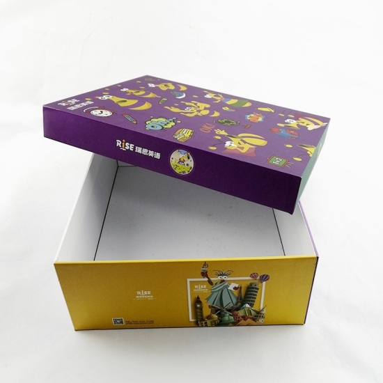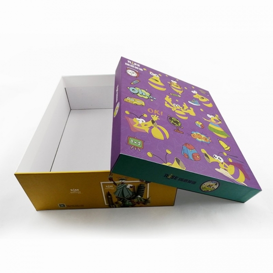 This is a large colored pattern rectangle gift boxes with lids made by 157g C2S art paper + 1200g grey board,matte lamination inside white plain color.