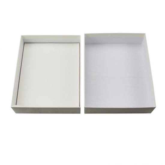 The box is using 157gsm coated art paper and 2mm grey cardboard. The measurement is 16*12*3cm, mainly used for packaging. It is pure white with no custom logo. It is simple style.
