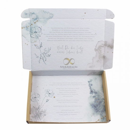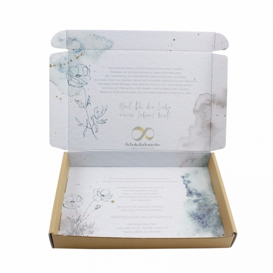 This is a personalized mailer boxes which made by BE flute+350g CCNB,full of unique and elegant design pattern printing inside of the box,outside in brown kraft color.