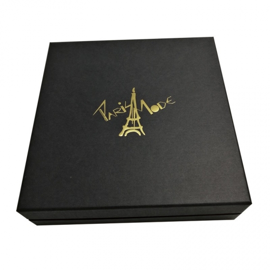 This gift box with lids is made by 120gsm black embossed cardboard with custom logo gold foil hot stamping. The shoulder is made with 153gsm gold card, matches the gold the logo to show elegant. There are also 4 small box inside made with the same material and finished, used to pack differnt items to present a special gift to clients or friends.