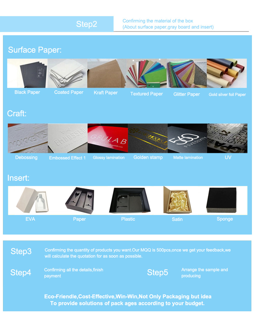 2) Material: 110gsm black and red textured paper mounted 1200gsm solid grey cardboard