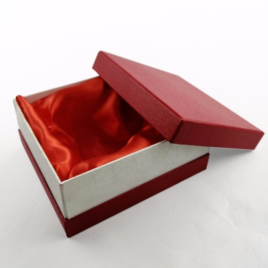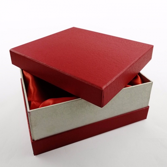 This is a one set of luxury red lid and base box which made by specialty red paper + 1200g grey board and the lining match satin and foam inside the box.