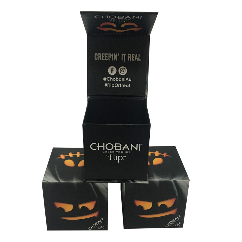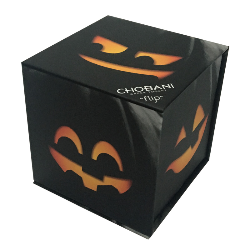 This is a black color rigid collapsible box which made by 157g C2S art paper + 1200g grey board,full color pumpkin printing on both sides of box.