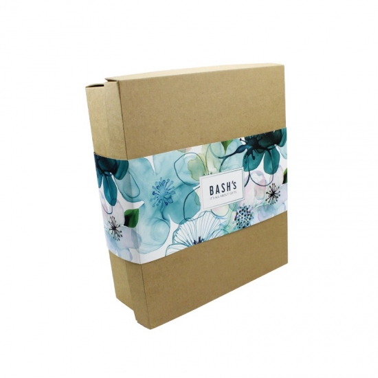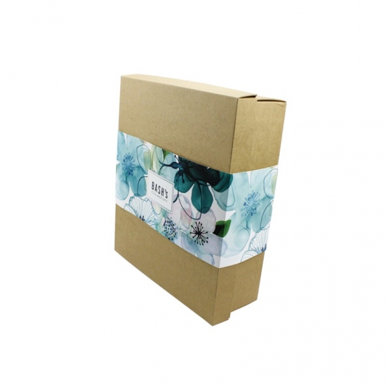 This is a square brown color black printing kraft gift boxes which made by 157g C2S art paper + 1200g grey board and custom colorful sleeve.