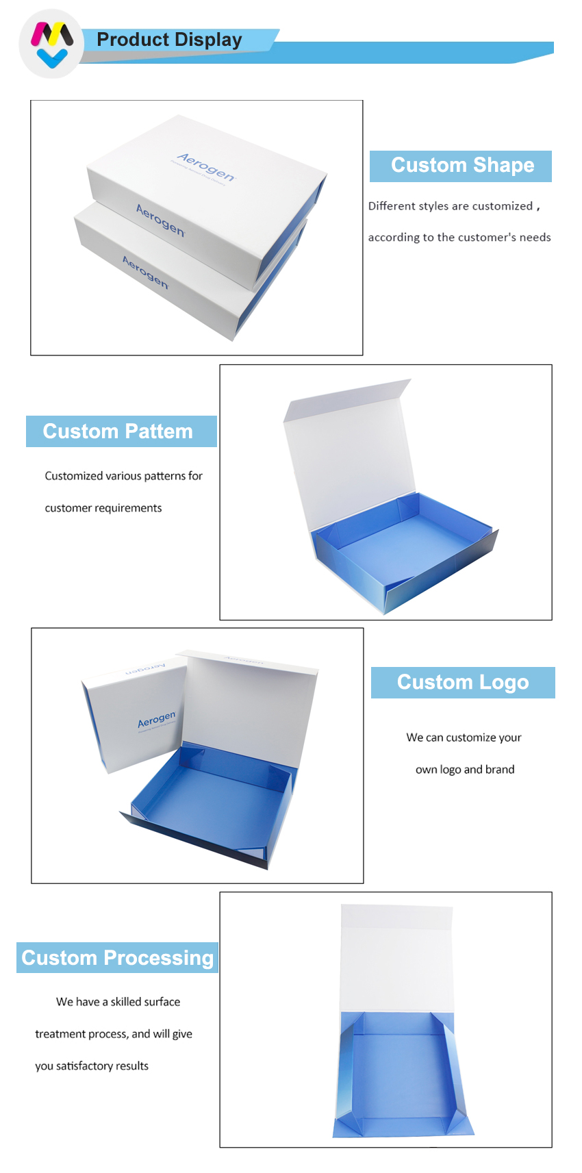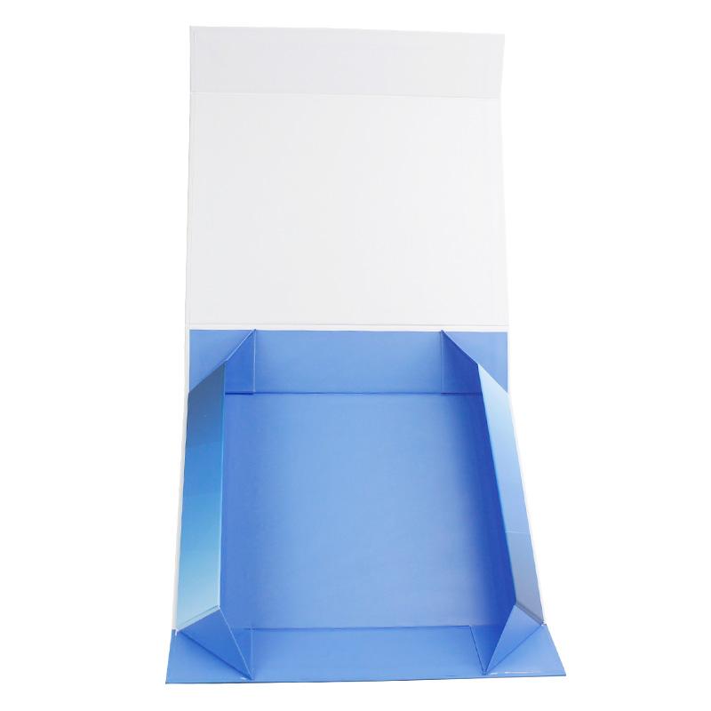 This is a simple white box with logo printing,custom inside blue plain cardboard foldable box,made by 157g C2S art paper + 1200g grey board,craft:matte surface finishing.