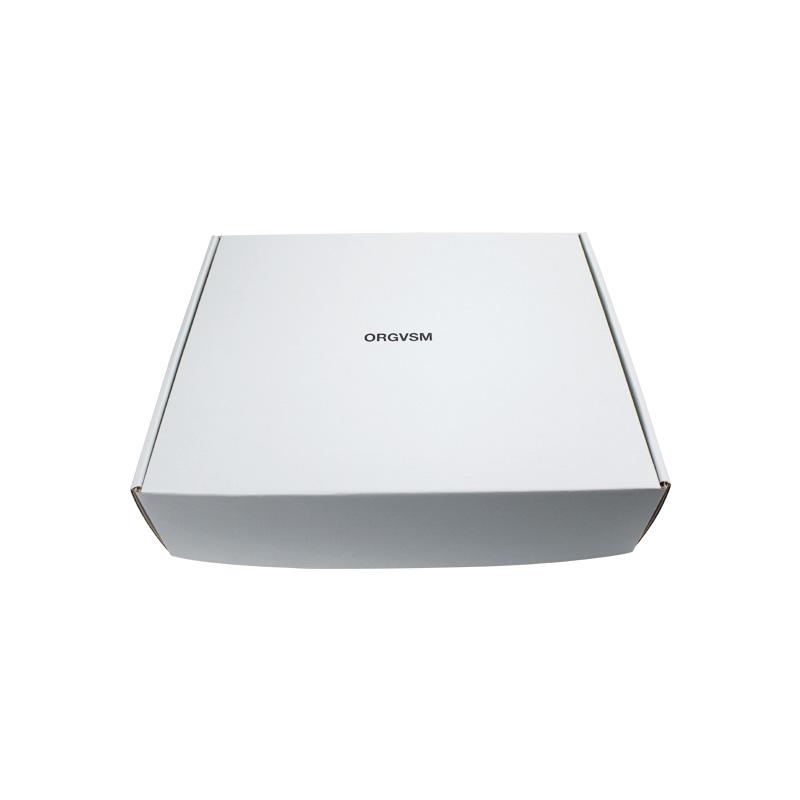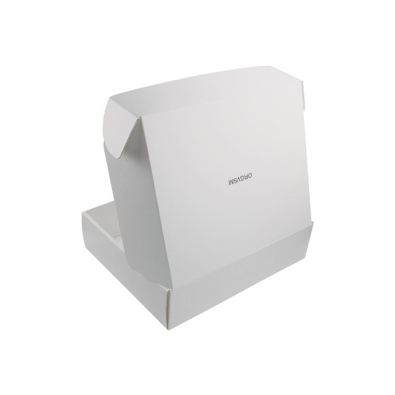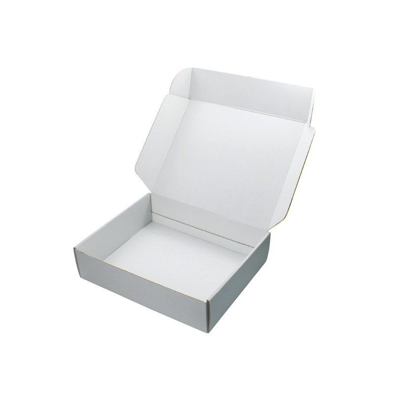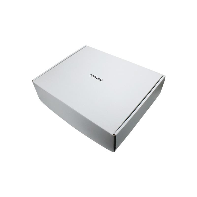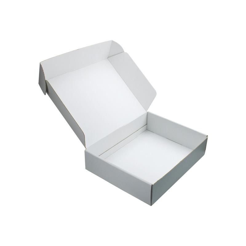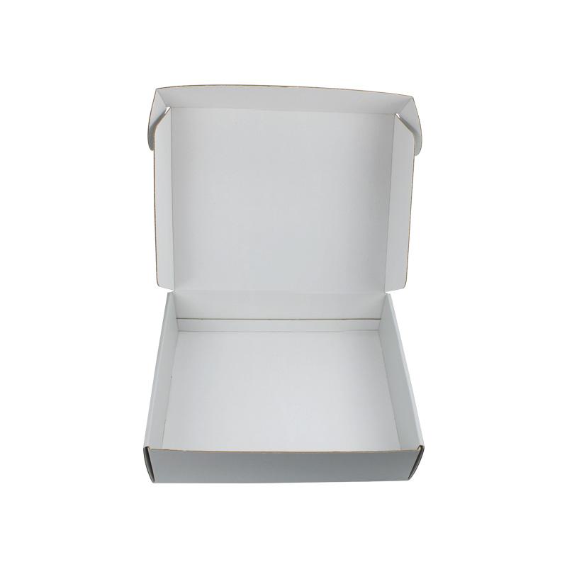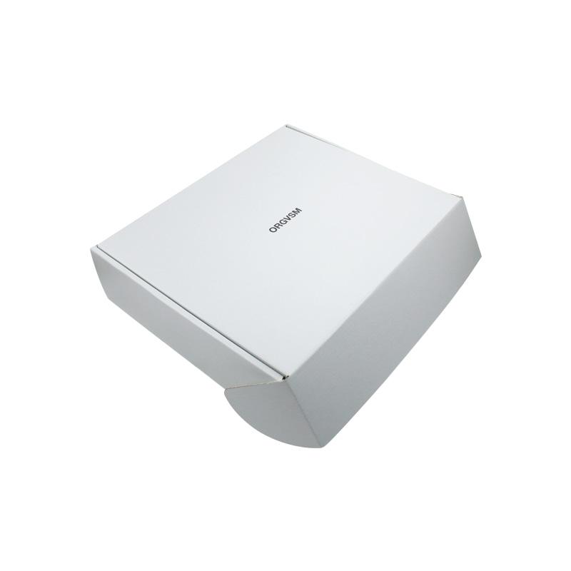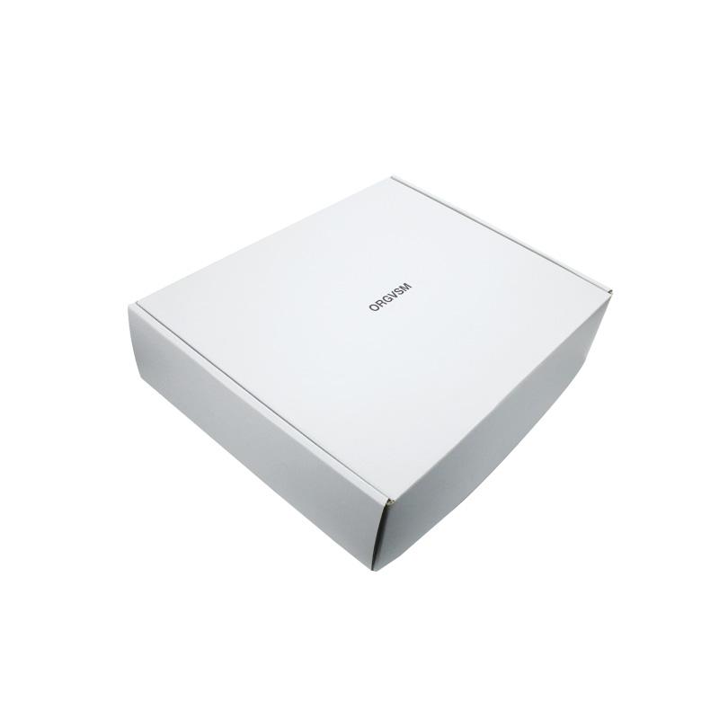 This is a white corrugated packing boxes which made by 250g CCNB+WE flute,it's a easy style of postal box that inside and outside are in white plain, custom logo on top lid with matte finishing.