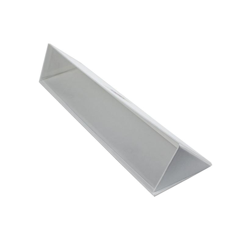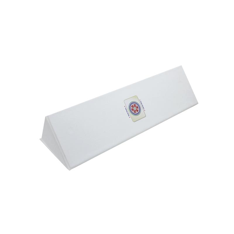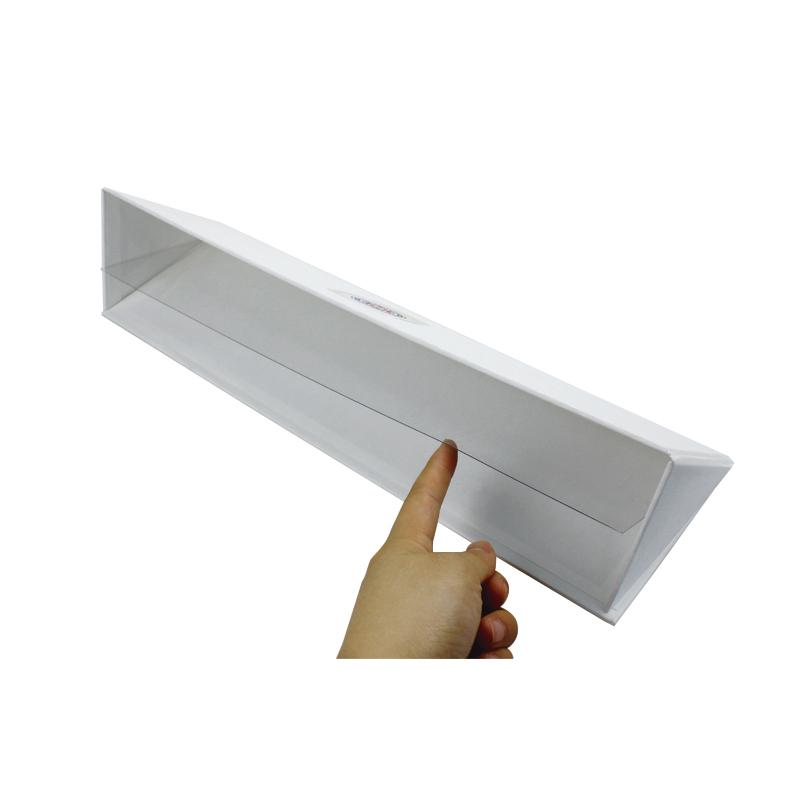 This is a white triangle display box which made by 157g coated art paper + 1200g grey board,matte white with printing logo on the cover,inside blank without any printing,it can flat packingand easy build up.