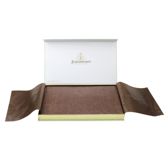 Green Chocolate Flip Top Gift Boxes With Magnetic Catch Simple white appearance, interior accessories have plastic tray box copy paper, low-key luxury, economic and beautiful. Suitable for all kinds of chocolate food packaging